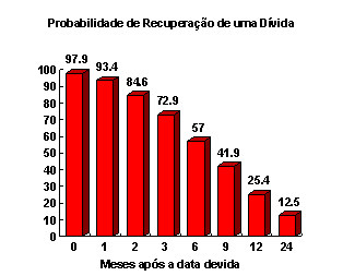 O gráfico apresentado revela uma sondagem encomendada pela "Commercial Collection Agency Section of the Commercial Law League of America" em 1993 e representa a probabilidade de uma dívida vir a ser paga após a expiração do prazo de pagamento. A sua análise levanta desde logo uma questão pertinente, na perspectiva do empresário que deseja cobrar a sua dívida : Quando desistir da cobrança ? É uma questão difícil que nem sempre é equacionada correctamente. Apenas quando o benefício previsto (compensado pela probabilidade de se vir a realizar) superar o custo esperado ?Alguns autores pensam que se deve ir sempre até ao fim (com algumas excepções, evidentemente), quanto mais não seja por uma questão de imagem que dissuade outros potenciais prevaricadores. Será uma questão abordada no próximo capítulo.